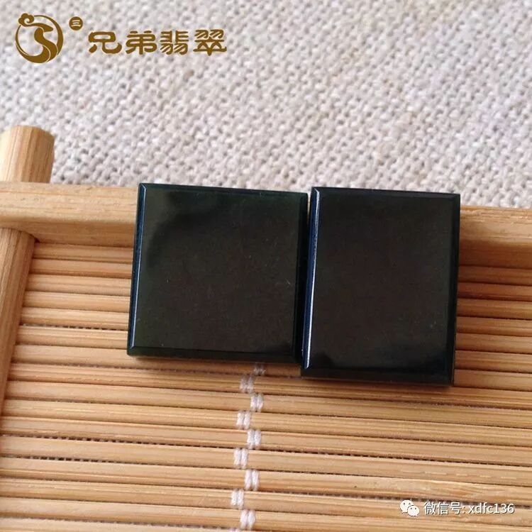 编号G4156墨翠方形裸石(价600/2个)规格:大17.6*13.8*4.6mm/3.9g 小16*15.8*3.8mm/3.3g 无纹裂