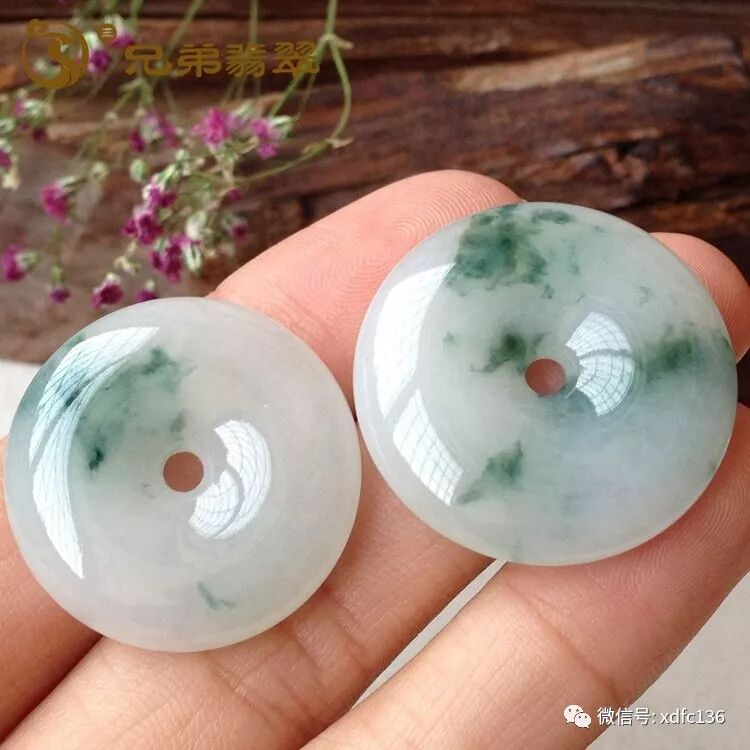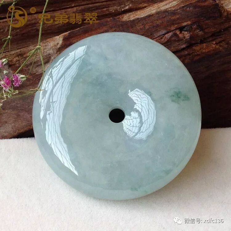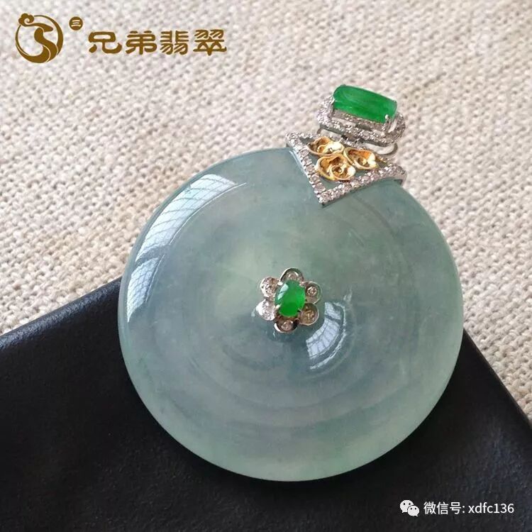 编号E2033高冰飘花平安扣吊坠18K金伴钻秒杀款(价1.3W)规格:大裸石34.1*6.4mm 小裸石3.6*6.5*1mm 连金41.8*34.1*7.9mm/18.3g 小裸石有纹 无抠感