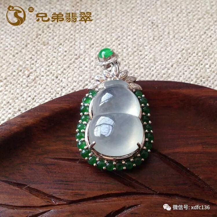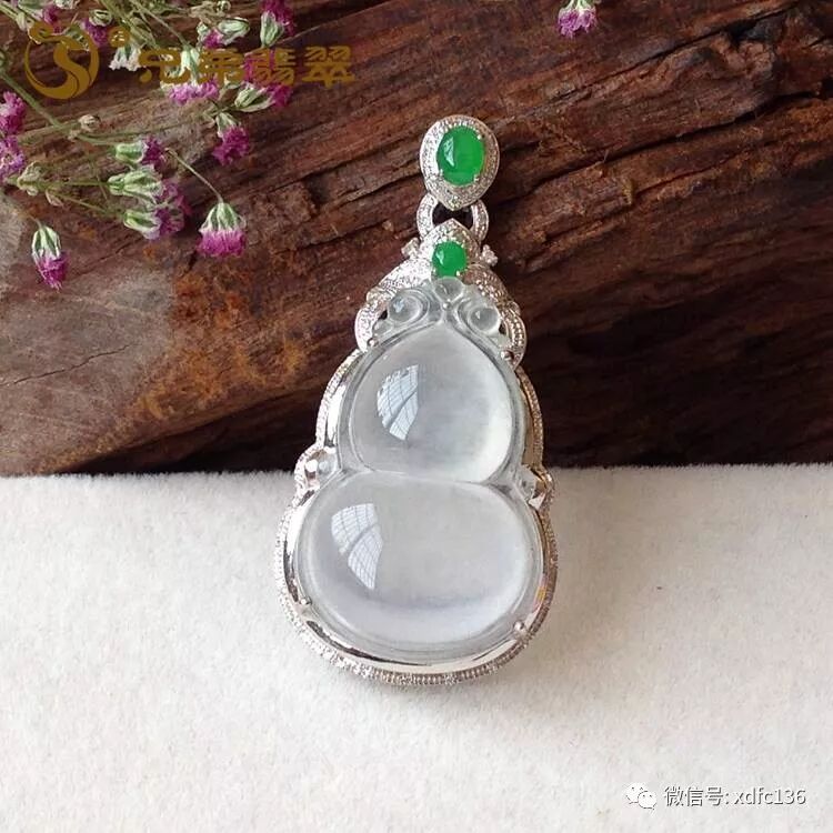 编号R1620高冰起光饱满葫芦吊坠18K金伴钻秒杀款(价6500)规格:裸石29.6*18.6*3.3mm 连金44.8*21.5*10.6mm/7.3g 无纹裂