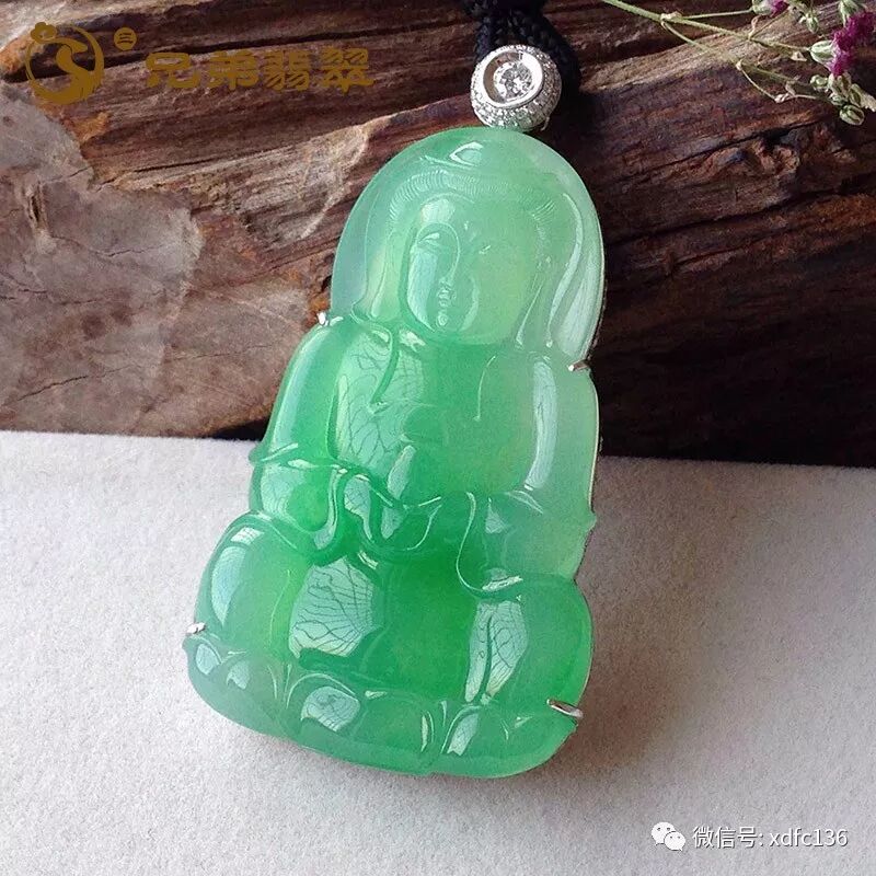 编号59281老坑拍卖收藏起胶水头十足至纯无染正阳绿底大件观音吊坠18K金伴钻(价41W)规格:裸石62.9*38.3*4mm 连金72*38.6*13.6mm/(带绳)74.2g 无纹裂 老坑冰料,饱满种水看得到,好像要溢出来一样!满阳色,很鲜纯,甜甜的,很有胶感!大件厚装,料子很足,上身存着感很强!豪镶观音,佩戴起来端庄大气,身份地位的象征!!兄弟家支持北京、上海、深圳、厦门线下看货服务,有缘来请~~