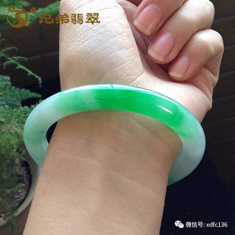 编号59283老坑一截水润细底阳绿清爽白底圆条手镯(价17W)口径:55.8*9.2*9.5mm/47.3g 有细纹 无抠感 非常老坑的料子,很细腻,水润润的!淡淡的底色衬得手镯非常恬静!一截高色,很冰翠,让人眼前一亮的美!上手更显圆润,富贵气质尽显~~兄弟家支持北京、上海、深圳、厦门线下看货服务!!