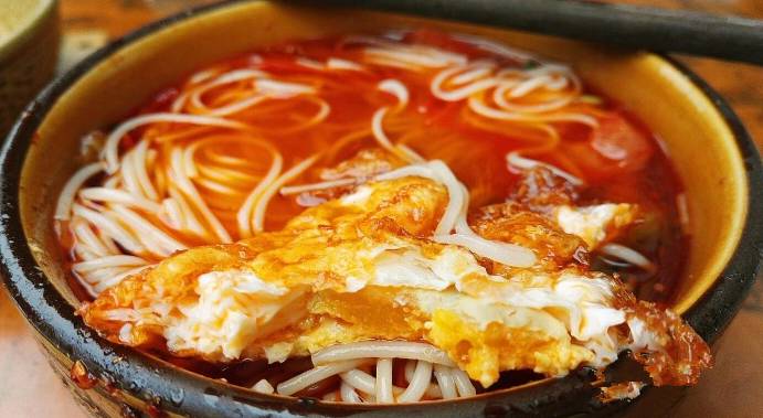 清光绪二十六年正月,厨师傅竹如在长顺街开面食店,使用铜瓢、铜锅、铜鼎,始创“铜锅煎蛋面”,如今成都华兴街铜锅煎蛋面已有100多年历史~是成都大写的百年老店之一!细细的面条还串起了几代成都人的味觉记忆。