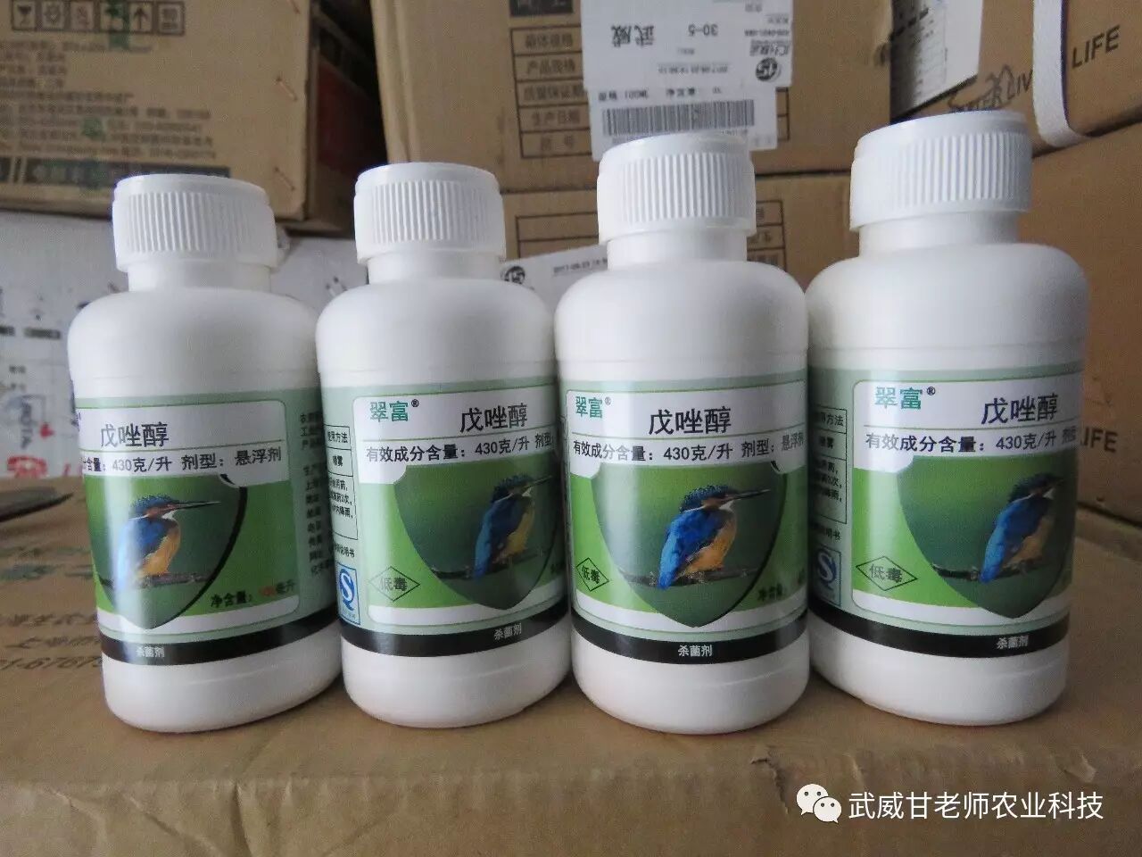 处方1:43%翠富(戊唑醇)悬浮剂20毫升+10%苯醚甲环唑微乳剂15克+钙尔美20克、或兴农盖美25毫升,对15公斤水全田均匀喷雾。