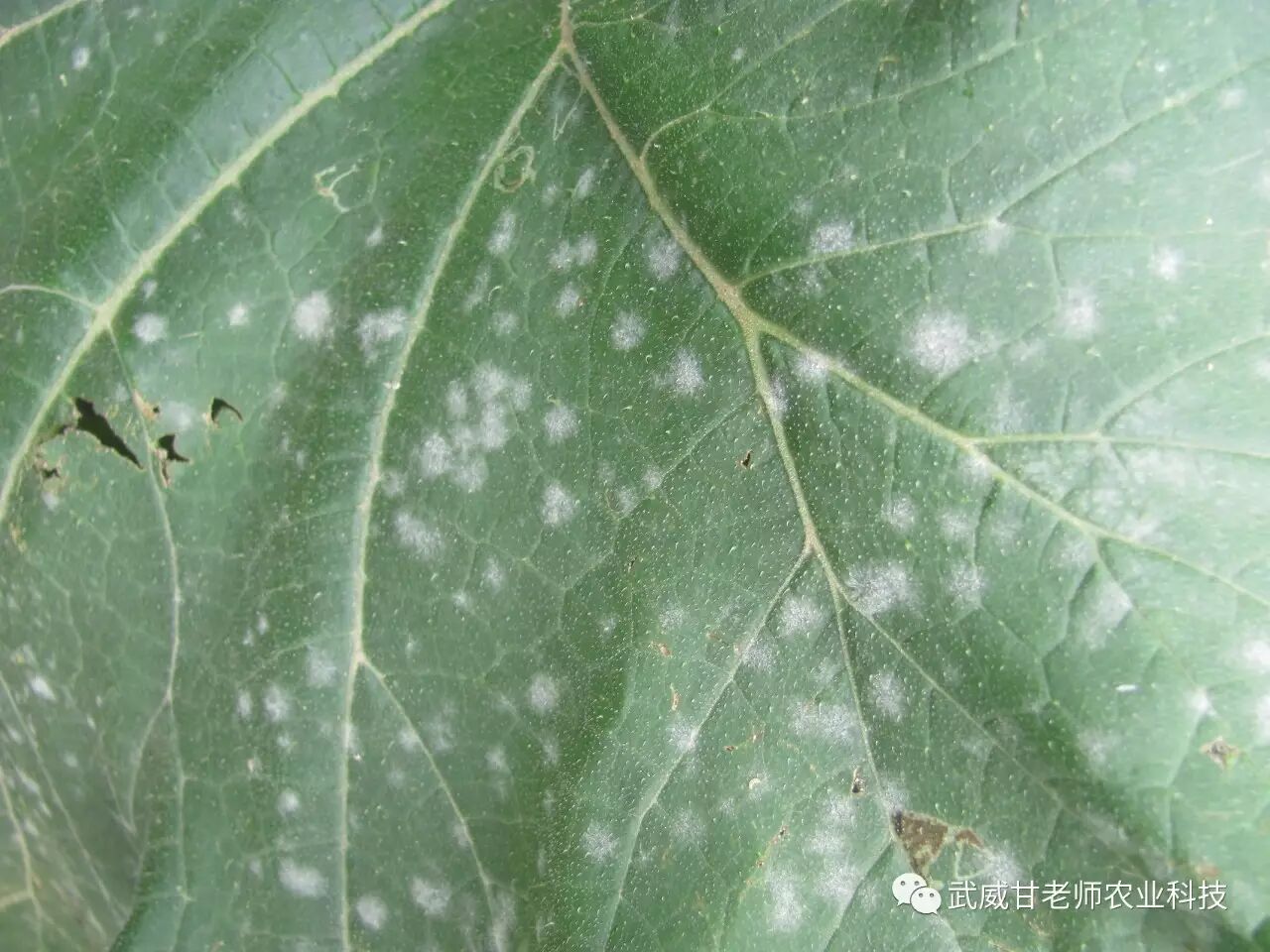 田间诊断时注意:西葫芦有的品种的叶片上会出现“银斑”,这是由品种特性决定的,不要误诊为白粉病。
