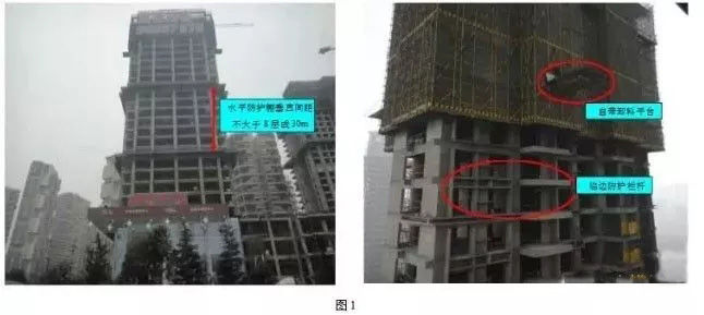 (3) 爬架提升后,预防物体坠落、物体打击措施