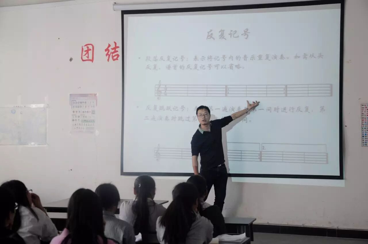 在第一堂课时,余金成老师用着幽默的话语给同学们讲授了学习葫芦丝应该掌握的基本知识。在小编踏入教室的不久后,老师在给同学们讲“节奏”时突然清嗓高歌“苍茫的天涯是我的爱~”把同学们都都笑了,看到这是不是有种想去听他课的冲动?