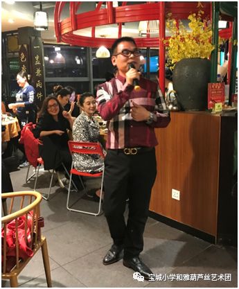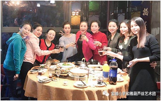 2017年12月29日晚上,为了庆祝在宝安区首届“宝城杯”教职工葫芦丝邀请赛上成功演出曲目《再吹山歌给党听》,宝城小学葫芦丝艺术团进行了聚餐活动。