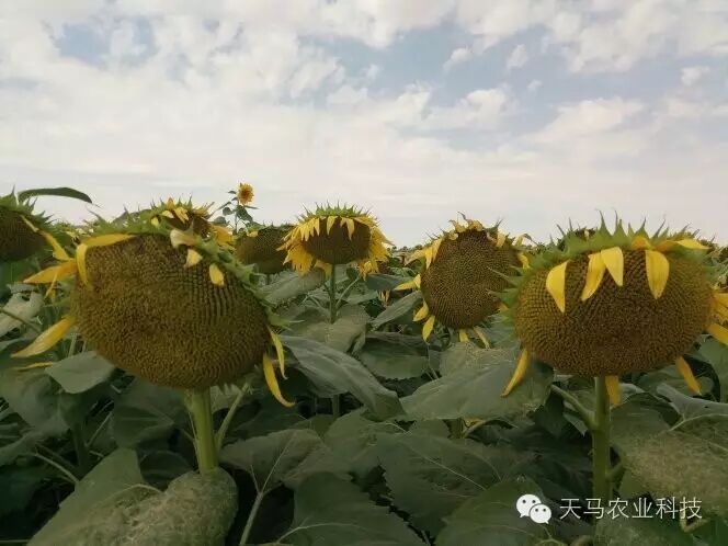 当向日葵花盘背面及上部叶片完全变黄时,避开雨天及时收获,脱粒晾晒。