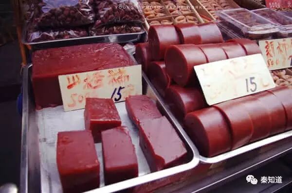 还有一种甜食叫做甑糕,用糯米和枣泥做成的,深红色甜美的枣泥下面有软滑的糯米糕,很受女孩子追捧。