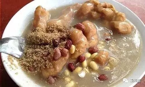 坊上的油茶麻花非常值得一提,油茶用小麦面粉和丰富的佐料以清油炒熟熬成汤,将麻花下到煮好的油茶中,撒上芝麻、杏仁、黄豆、花生、核桃等配料,麻花的酥脆瞬间变成香软。它便宜、廉价,它的香味几乎让所有西安人都难以忘怀。