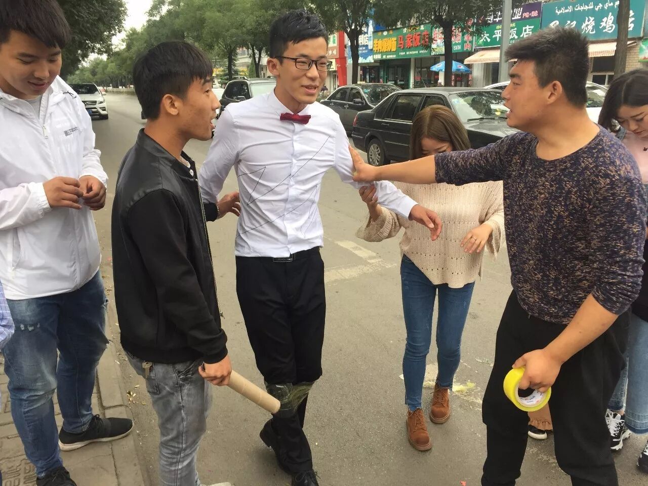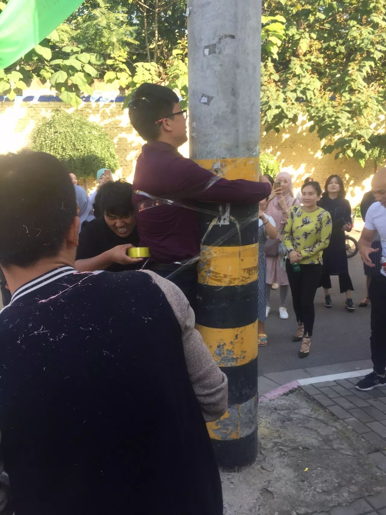 坐婚车回男方家里,在快到男方家的半路上,伴郎们会把婚车拦下,让新郎新娘下车,戏耍新郎新娘,一路上让他们做各种表演才能回去。有这样一个规矩如果伴郎没结婚,今天不戏耍新郎,到时候等伴郎结婚会被新郎戏耍,所以大家玩的都很卖力,生怕以后自己被戏耍吃了亏。