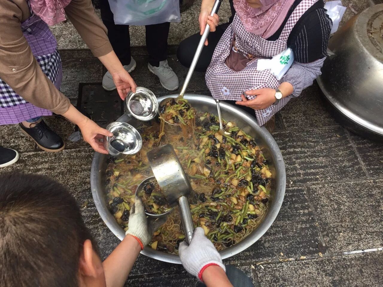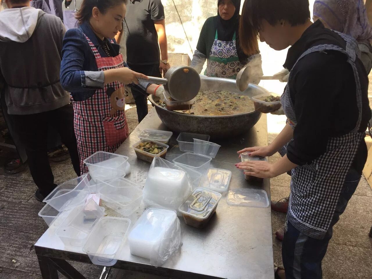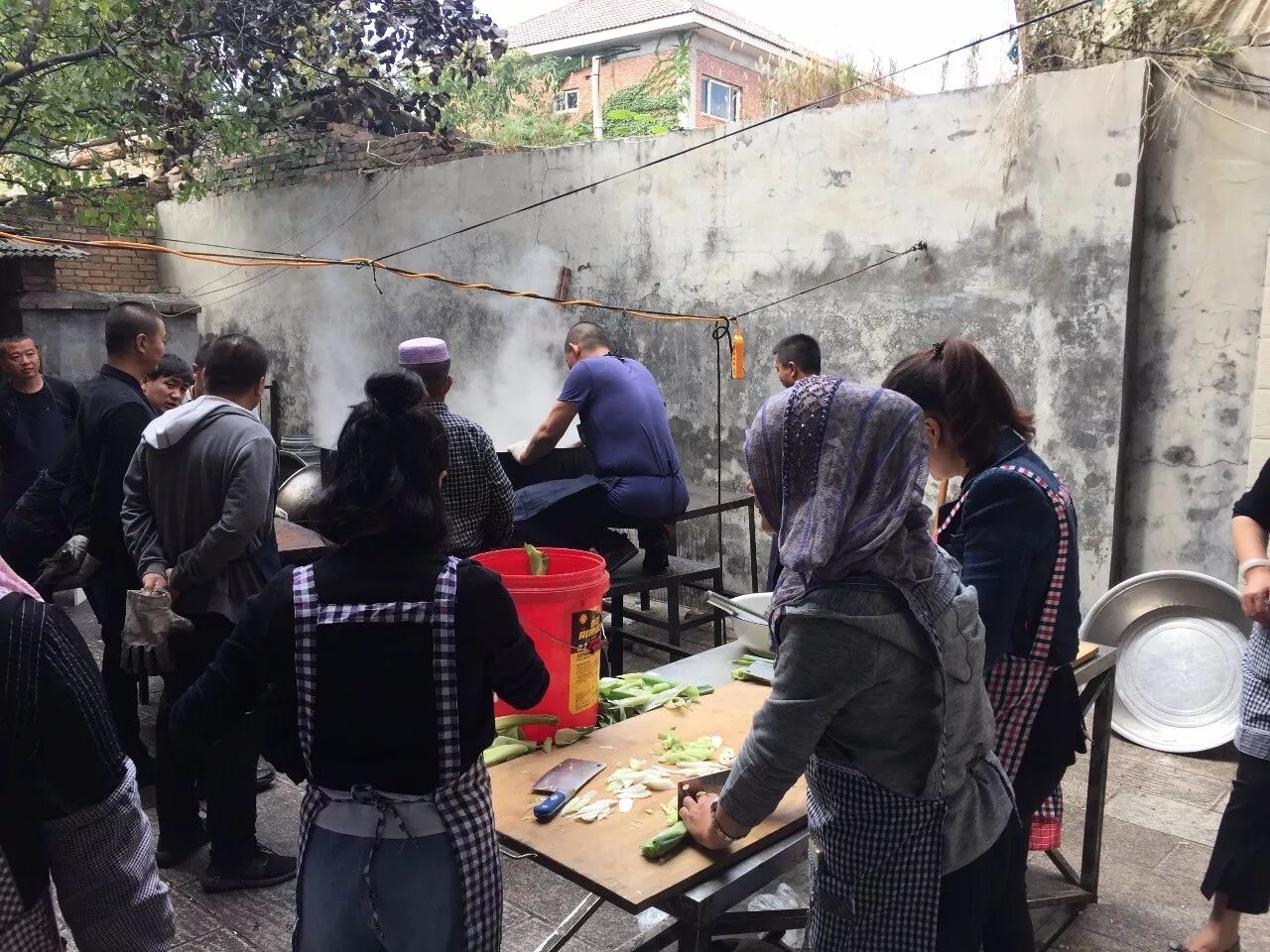 这三天要做大锅饭,每天的饭也各有差别,都是名族特色,一般是牛肉烩菜,过油肉,炸酱面,喜面,卖相都不是很好,但是吃起来都是百年不变的经典,不知道大家有没有参加过回族婚礼吃到过,在我旁边的一个汉族同学吃了两碗还叫嚷着再来一碗。