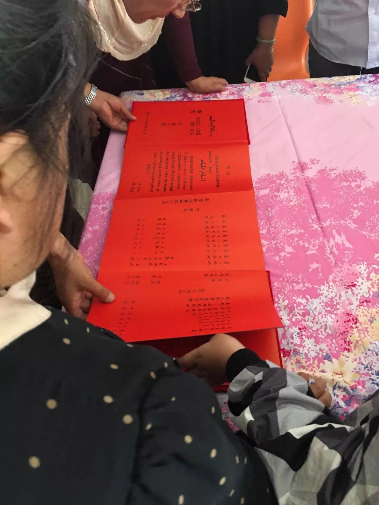 晚上要请念女克哈(证婚仪式),先是让查房(主伴郎)去女方喊新郎岳父岳母,不过一般都不好喊需要多喊几次女方人员才会走,等女方人都到齐来了,先是请念古兰经, 然后会让新郎新娘念作证言(证明自己是伊斯兰教一员),全体到场宾客吃饭,参观男方的房子,三天基本结束。