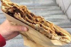 锅盔的口味也多,在鲜肉馅、糖馅、牛肉馅、梅菜干馅众多中,我最喜欢的就是梅菜干锅盔。刚出炉的梅干菜锅盔十分烫手,金黄的外皮焦脆,趁着热乎咬一口,会发出嘎吱嘎吱的响声,特过瘾。嚼上几口,梅干菜独有的咸香和辣椒的爽快结合在一起,合着饼皮的香酥,实在太带劲。走着吃着没几分钟也就到图书馆了,心满意足的开始接下来的复习。