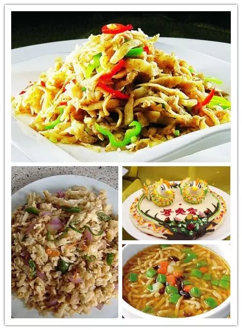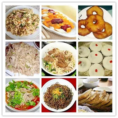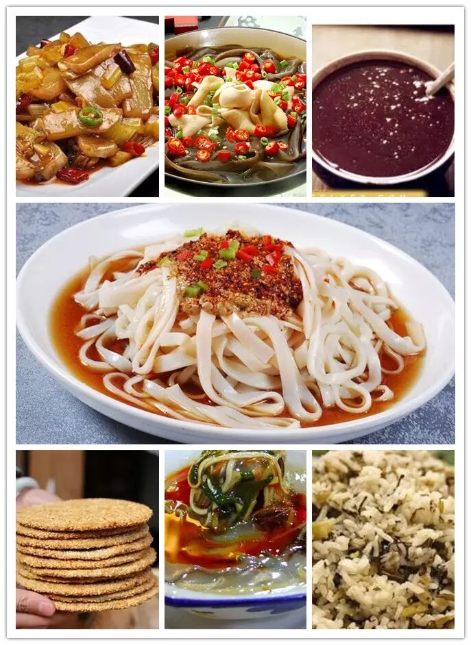 姜丝拌汤、炕抗馍、揽饭、安康蒸面、康兮寿兮黑米糊、蕨粉皮子、岚皋魔芋……