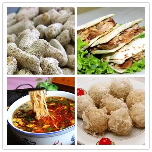 羊肉泡馍、biangbiang面、葫芦头、腊汁肉夹馍、凉皮……