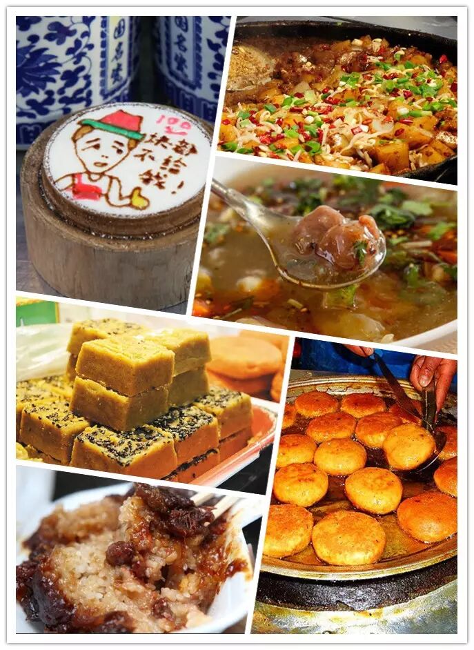 玫瑰甄糕、炒凉粉、肉丸胡辣汤、黄桂柿子饼、壶壶油茶、绿豆糕……