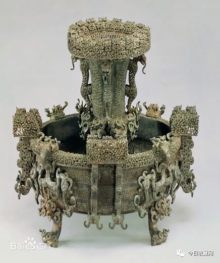 鼎盛期:包括夏、商、西周、春秋及战国早期,延续时间约一千六百余年。这个时期的青铜器主要分为礼乐器、兵器及杂器。乐器也主要用在宗庙祭祀活动中。礼器是古代繁文缛节的礼仪中使用的,它带有一定的神圣性,是不能在一般生活场合使用的。所有青铜器中,礼器数量最多,制作也最精美。礼乐器可以代表中国青铜器制作工艺的最高水平。礼器种类包括烹炊器、食器、酒器、水器和神像类。这一时期的青铜器装饰最为精美,文饰种类也较多。