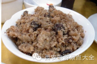 回坊粉蒸肉跟平时说的“南方粉蒸肉”完全是两种概念,更接近新疆的“手抓饭”,基本是米粉包肉,油比较大。假如吃得惯,那虽说腻是腻点,但是很美味,现在回坊的做法已经融入了很不错的陕西特色,那就是加入大量的蒜蓉,吃的时候要同时吃生蒜,喝砖茶,能非常好的去油腻。