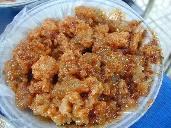 汉中面皮一般采用米浆为原料,偶尔也用面粉直接调浆(当地称“面面皮”),一般是把大米浸泡后磨成米浆,上笼蒸成薄皮儿,趁热抹上菜籽油,切成条状,依个人口味调入油辣子、味精、精盐、醋、酱油、蒜泥水等佐料,拌匀即可食用。口感软糯,香辣。