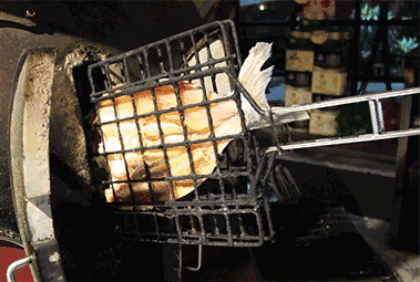 据烤鱼师傅说,炉内温度高达350-400度,但炉外却不烫手,大炉一次能容纳十多条鱼同时入肚,怪不得出炉的鱼个个外焦里嫩。