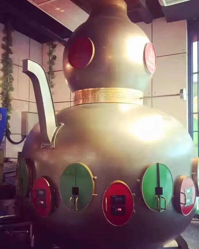 整个葫芦高两米多,纯铜打制,一共12个炉孔,炉身浑圆饱满,炉内用环保的无烟碳。精心烤制着各色鱼种食材,铁炉烤制而成的鱼也更为焦嫩。