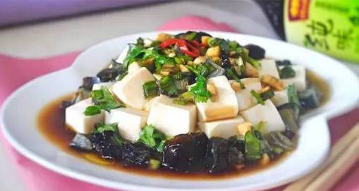 5.将调味汁淋到皮蛋豆腐上,吃时拌匀