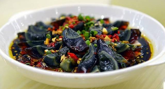 原料:松花皮蛋、红辣椒、青辣椒、香菇
