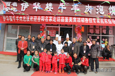 合阳坊镇伊华楼的牛(羊)泡馍,由青年厨师吴小涛在其师傅李军(当代餐饮界名厨)的指点下用优质牛(羊)肉、牛(羊)骨,配以花椒、大茴、草果、桂皮等四十多种中药材和调料入锅内熬制而成,他烹饪的牛(羊)肉泡馍,工艺讲究,烹制精细,火候到家,肉烂汤浓,料重味醇,馍筋光润,绵韧适口,肥而不腻,营养丰富,且具有食疗滋补作用。