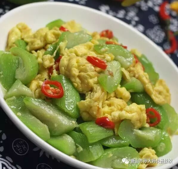 食材:丝瓜一根(大约一斤),鸡蛋3枚,红辣椒一个,植物油,盐,姜