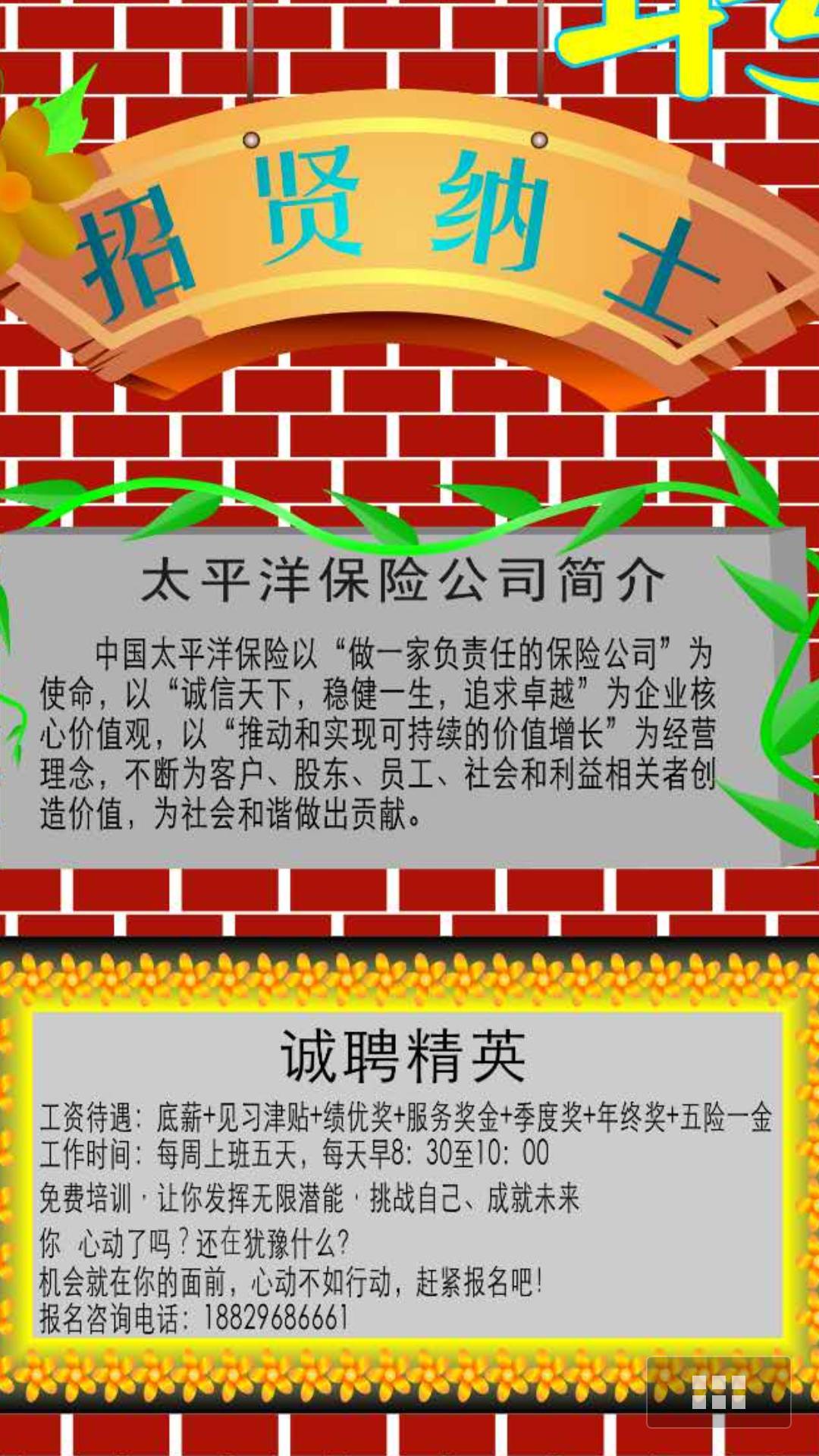 太平洋保险公司镇安支公司因业务需要,面向社会诚招各路精英加盟,男女不限(18-50岁之间)。 工资待遇:底薪1000元+提成+津贴+奖励,福利五险一金,待编员工制。上班时间:早8点--10点双休日,招聘人员:业务员25人,名额有限、欲报从速。