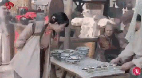 集市的场景里,泡馍这一幕拍得可谓相当生动,不仅有泖馍的过程,还有掰馍和小菜的出场,几乎是还原了老陕吃泡馍的过程,虽然短短几秒飘过,但是看着这贼拉大的碗,好吃君忍不住咽下口水!