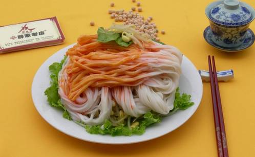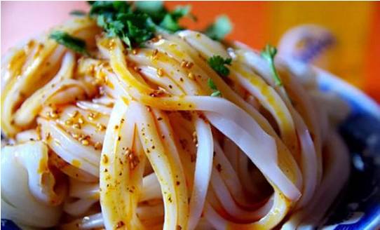 秦镇米皮是陕西户县秦镇的著名特色小吃,陕西凉皮“四大花旦”之一,因产于西安户县秦镇而得名,又叫秦镇凉皮,特点可以用四个字来描述:筋、薄、细、穰。米皮本身色白如雪,光润如脂,再配上佐料蔬菜、豆芽、辣椒油、香醋,回味无穷,别有风味。