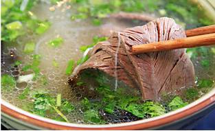 与把饼泡在汤里和着肉一块儿吃不同,“双合”是指把肉提前放在汤里,食客可以先把肉夹在饼里吃,然后再喝汤。