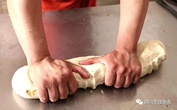 在揉制过程中,还需用刀把面团划开,抹一些菜油后再继续揉,使其显得油润(见下图1)。