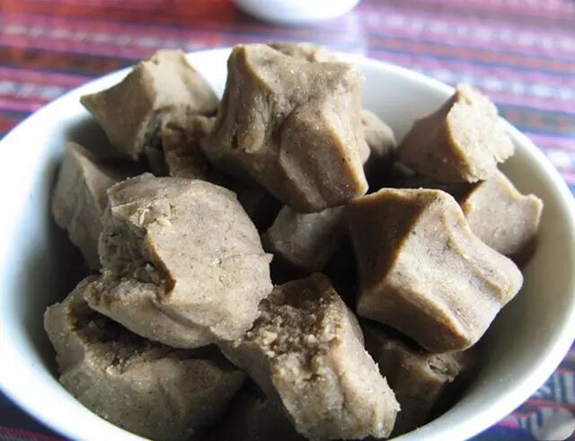 奶渣是藏餐中常见的食材。 它其实是从牛奶中提取发酵的,类似酸奶的口味但味道浓郁许多。用油和白糖炒出的奶渣应该会合大部分人的胃口,甜甜酸酸超开胃哒~藏餐中的包子,也是很有特色的。先把牦牛肉或绵羊肉细细剁碎,边剁边洒水,加上盐巴、花椒、葱蒜等佐料。包子蒸熟后,再炖一锅骨头汤。人们一边吃包子,一边喝骨头汤。因为肉馅里有很多水分,包子里储存大量肉汁,吃起来味道鲜美,但为防汁液渗出,最好先将包子咬出一个小洞,吸出肉汁再好好享用。酥油茶的打制方法是:先在“栋莫”(酥油茶桶)里加入酥油,再倒进熬好的热茶,上下进行搅动,当茶和酥油完全融合后,就可以享用了。康定锅魁别具风味。马市上清真寺对面,文昌庙(原回小校舍处)坎下郑家的锅魁全城闻名。品种有混糖锅魁、油旋子、方方酥、糖锅魁等,香酥甜俱佳,令人回味无穷。用酥油制成的饼是康定人家最爱吃的面食之一,酥油饼用上等白面粉搀和白糖,以花生油煎制而成。食时,先尝到白糖粉,入口松脆可口,颇具风味。糌粑,实际上就是青稞炒面。糌粑的制作方法是,将青稞晒干炒熟、磨细、不过筛,这样制成的炒面便是可以食用的糌粑了。糌粑先炒后磨,不除皮。吃糌粑时,碗里放上一些酥油,冲入茶水,加点糌粑面,用手不断搅匀,这样独特的味道,在内地可是吃不到的哦~~凉粉是康定最受追捧的小吃,康定人逛街累了来一碗,想吃辣的来一碗,要是郊游没有带上凉粉,那也算不成郊游了。在城里每条街道上都有一家地道的凉粉店。不过生意最好的要算“田凉粉”,开在背街的小巷里,每天不到七点,门口已经大排长龙,几百斤凉粉不到两个小时便销售一空,所以想品尝田凉粉的小伙伴必须早早就去排队啦~~“田凉粉”作为康定的名小吃之一,在九五年就已载入康定县志:“田凉粉“其制作考究,选料精细,火候到家,凉粉有韧性,调和不断;调料更为讲究,辣椒去籽碾末,煎油红亮味香,豆豉炒盐,酱红味浓,清淡可口;其独特的制作工艺更让保鲜效果极佳,不易变质变味,实为旅行野餐、登山的最佳小吃之一。”中央电视台“吃八方”栏目、四川电视台四套节目、康定电视台“在康定”栏目等媒体都对“田凉粉”作过专题报道。田家凉粉是典型的家族产业,凉粉的做法及调料皆属祖传秘方,至今已传至第三代人田发志继承经营。“田凉粉”以诚信经营、味美价廉而深受消费者喜爱。传统地道的制作工艺,选用产自康巴高原本地豌豆作为原材料,这都是田凉粉久吃不厌,久卖不衰的原因。