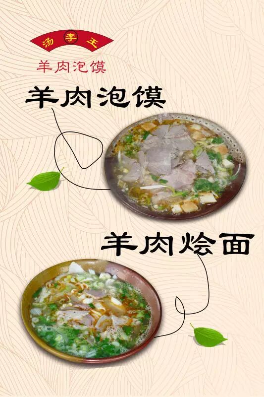 汤李王羊肉泡馍以上等鲜羊肉为主料,经加工熬煮,兑汤而成,所以又称羊汤,因其选料考究,工艺精细,作料齐全,汤味十分醇香,经营者惜汤如油,故有“宁加一片肉,不添一勺汤”之说。