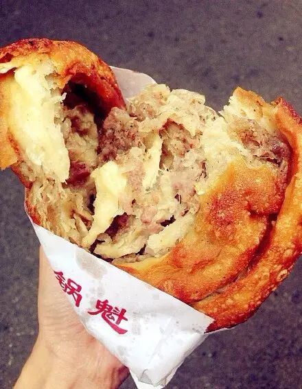 大概等个十来分钟,就可以起锅了,一锅二十个油亮油亮的锅魁,混着猪肉馅、牛肉馅、红糖和白面。卖的最好的属牛肉馅和猪肉馅,咬一口,酥脆掉渣,油香四溢,带着麻辣和椒香,两层厚实的肉馅使得内馅儿异常饱满,口口有肉。