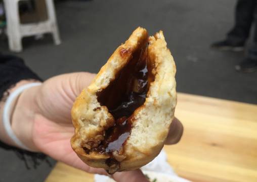 饼很厚实,但吃着很酥脆。牛肉比猪肉的吃起来要香一些,而且价格也不贵。店面就在地铁站出口,饿了随手买一个吃,特别美味。