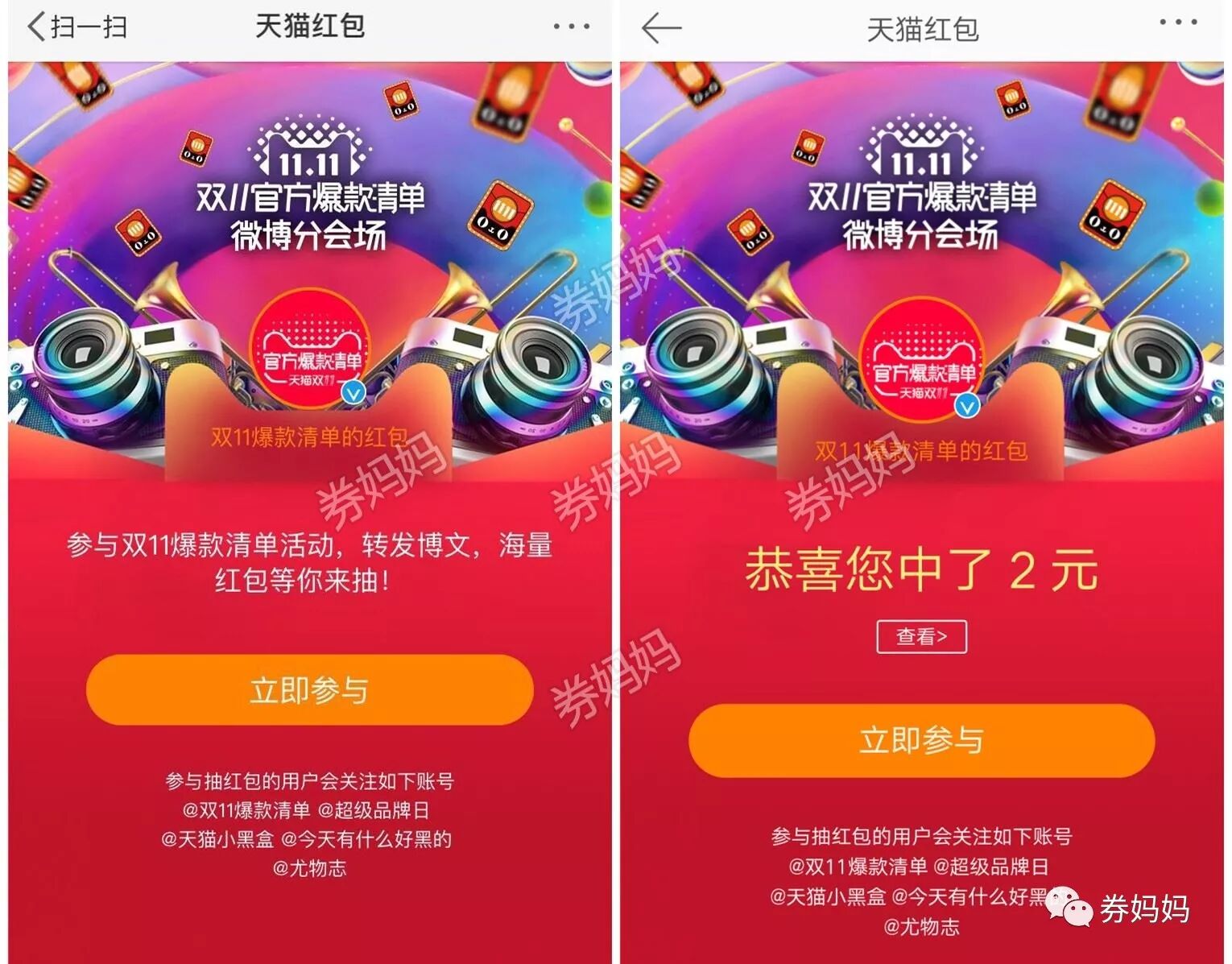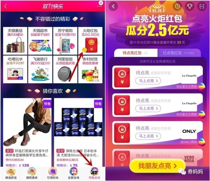 券妈妈双11助力红包雨