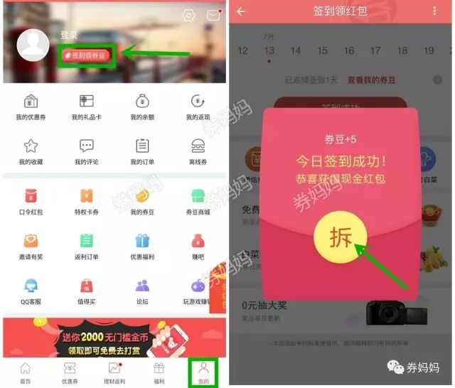 券妈妈签到红包
