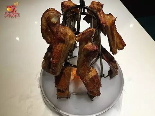 架子烤肉,切长条的羊肉直接挂在小塔一样的架子上,下馕坑烘烤。牙齿咬下去,肉皮薄脆出味,里边的脂肪层里锁着部分汁水,一咬浓香润口。瘦肉紧实发脆,吃在嘴里有几分嚼头。