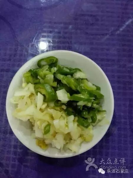 这是搭配的小料,一半是腌制的白白的大白菜,一半是腌制的绿绿的小尖椒,可以夹到饼里大口咬着吃,也可以放到汤里huojiao着吃,随君喜好![]()