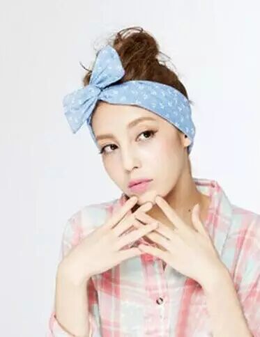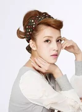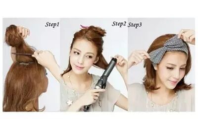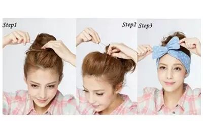 step 2:发带两侧往后缠绕在吗诶扎发处,打个可爱蝴蝶结。最后稍微调整一下发带的松紧就完成了。