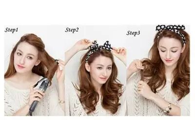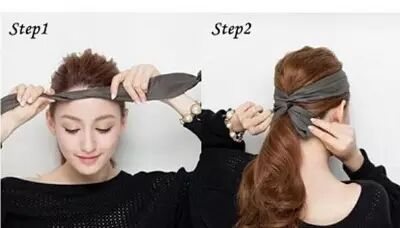 step 1:刘海往后梳与后面头发绑成低马尾,发带放在刘海发际线下方一点位置。