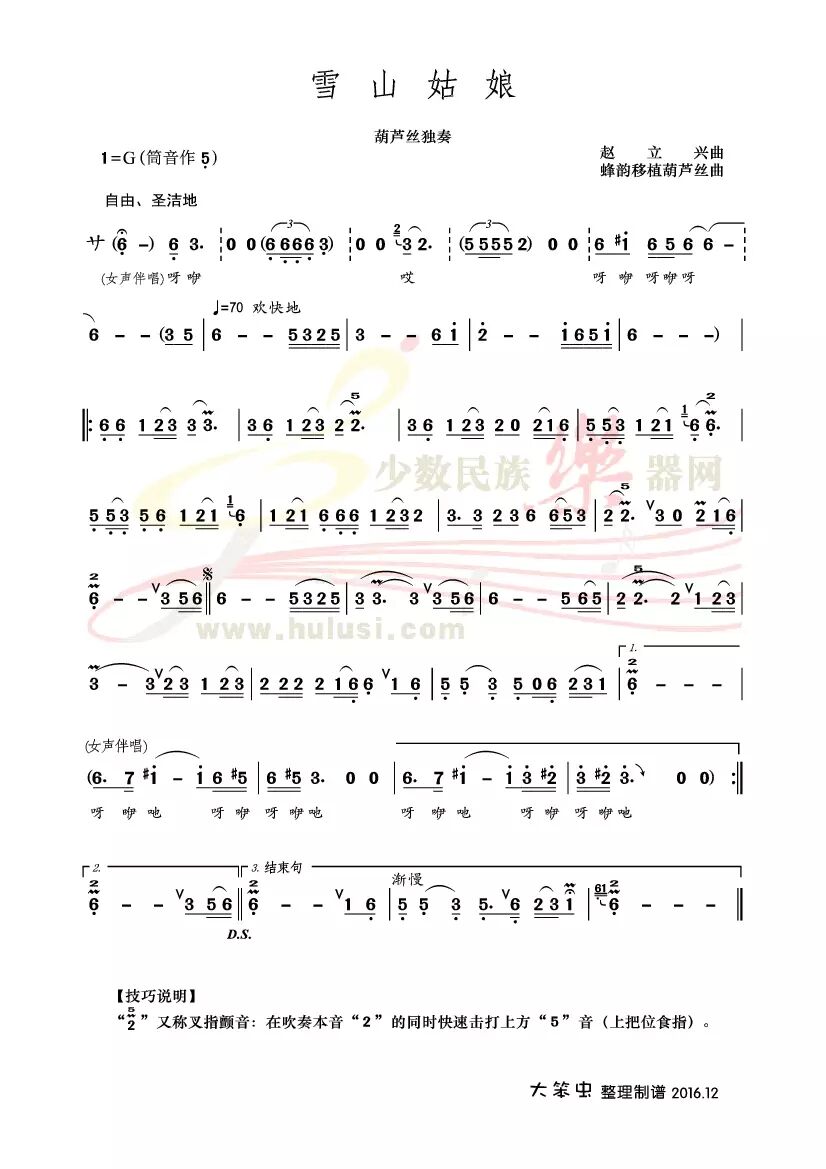 这是一首藏族风情乐曲,在巴桑拉姆自由圣洁、回音袅袅的伴唱中,在藏族特色激 情欢跃的前奏下,大G调葫芦丝以纯厚明亮的天籁之声,演奏出感人的主旋律。葫芦丝《雪山姑娘》音频