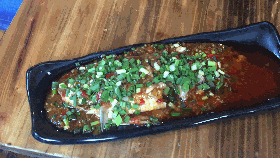 鲜烧口味,厚厚的一层酱料盖满了整条鲫鱼,虽然刺不少,但是完全不妨碍它的受欢迎程度,几乎每桌都有一份,你也不要错过哈。而且每天限量,去晚了没得吃哦。