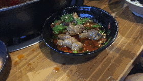 还有一开始就丢进去煮的牛杂,最后才舍得捞出来,把全部的锅底和其他菜品的精华都吸收完了。