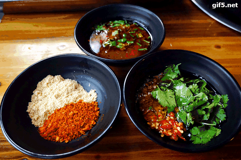 等待串串的时候也不能闲着,打料碟撒,在盖帮这里的料碟都是自助的,香香的干海椒面,耗油,香菜,蒜泥,想吃什么口味都行。