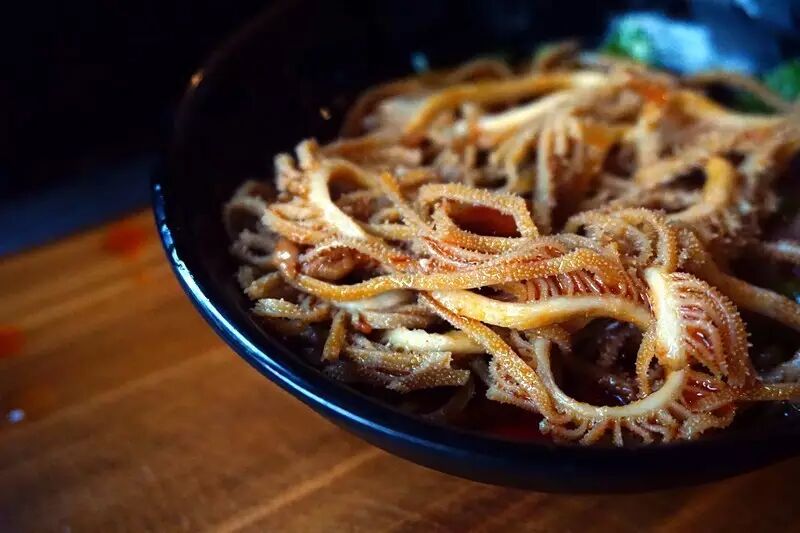 结子相比肥肠少了一份油腻,并且表皮更加的脆,腌制的时候就已经吸饱了卤水,然后又在盖帮的红锅里满满的吸收汤汁,哎呀,一口下去爆浆的感觉不光是撒尿牛丸,盖帮的结子你也能感受到哈。